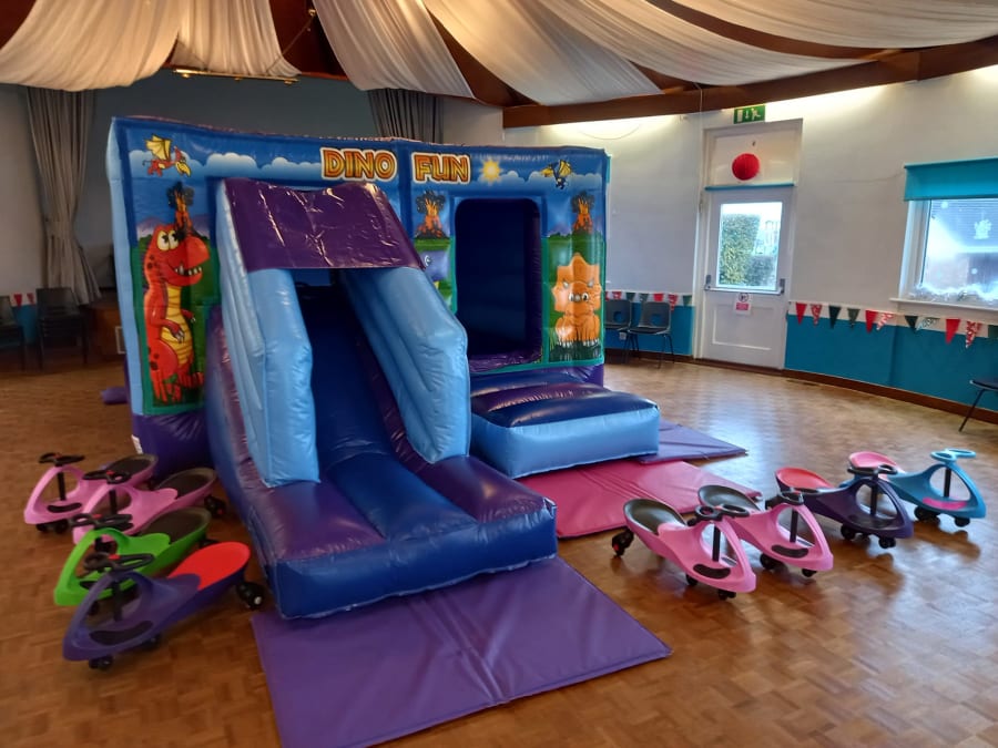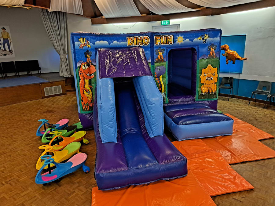 🎉 Get ready for an epic adventure with our 18 x 12ft Dinosaur themed Bouncy Castle with slide! 🦖🌋 Perfect for dinosaur enthusiasts, this bouncy castle will transport your little ones to a prehistoric world of fun and excitement.
