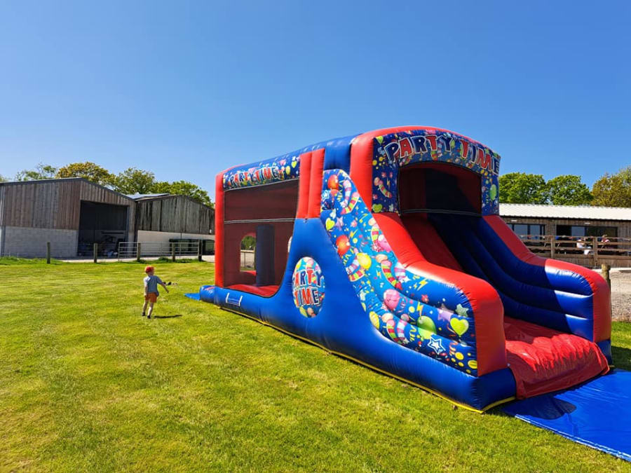 We proudly offer delivery of our 11x30ft FUN RUN Bouncy Castle/Slide to the following areas: Launceston, Bude, Holsworthy, and surrounding areas. Whether you're hosting a backyard party or a community event, we'll bring the fun right to your doorstep.