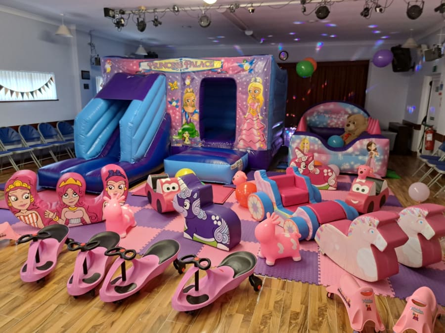 Our package includes a deluxe Princess Bouncy Castle with a slide, providing hours of bouncing fun for all the little princesses. The Princess Inflatable Ball Pool with floating balls adds an extra element of excitement, while the premium Unicorn/Princess Soft Play with pink and purple soft play matting offers a safe and fun play area.